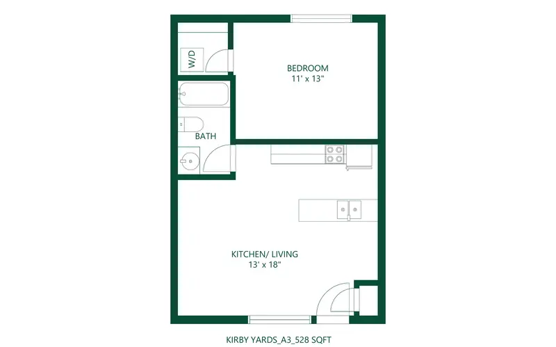 Floorplans range from approx. 528 sq ft to 835 sq ft, offering studio, one-bedroom, and select two-bedroom layouts that balance space and value. Rents typically start between $1,200–$1,250/month, placing Kirby Yards competitively within Dallas's boutique rental market. Each unit is thoughtfully outfitted with premium details, including glass-top stoves, under-mount sinks, ceiling fans, and double-pane windows, ensuring efficiency and modern flair.