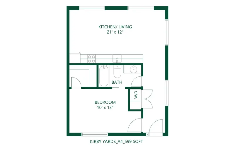Floorplans range from approx. 528 sq ft to 835 sq ft, offering studio, one-bedroom, and select two-bedroom layouts that balance space and value. Rents typically start between $1,200–$1,250/month, placing Kirby Yards competitively within Dallas's boutique rental market. Each unit is thoughtfully outfitted with premium details, including glass-top stoves, under-mount sinks, ceiling fans, and double-pane windows, ensuring efficiency and modern flair.
